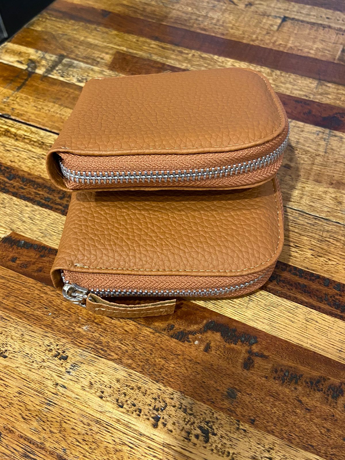 BILLETERA DE CUERO, COLOR SUELA CON CIERRE