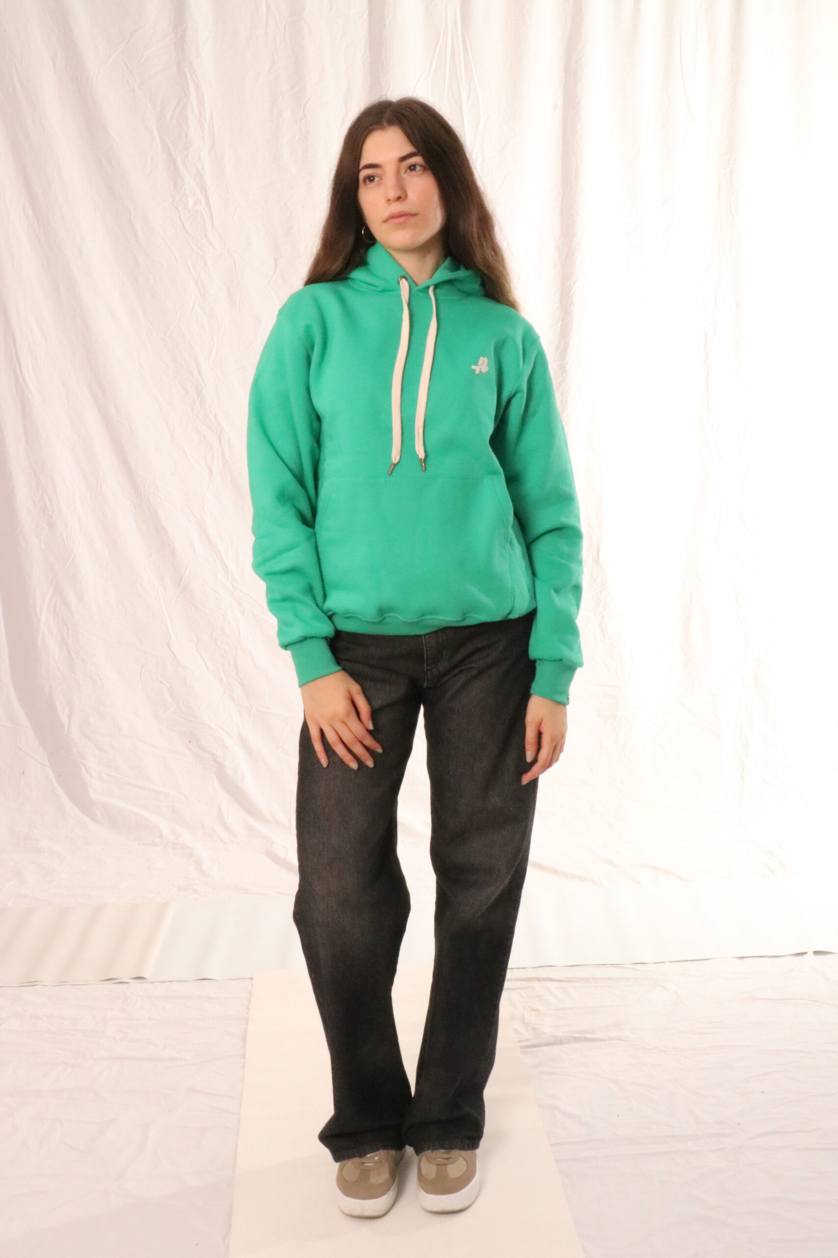 Buzo con capucha y bolsillo canguro. Confeccionado en rústico gamuzado y esmerilado 100% algodon. Tacto suave.