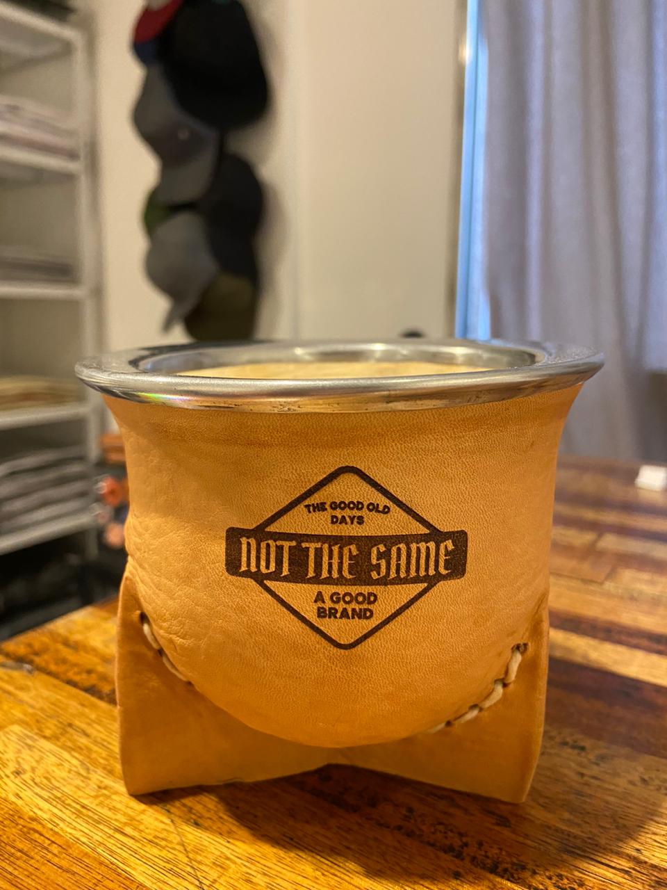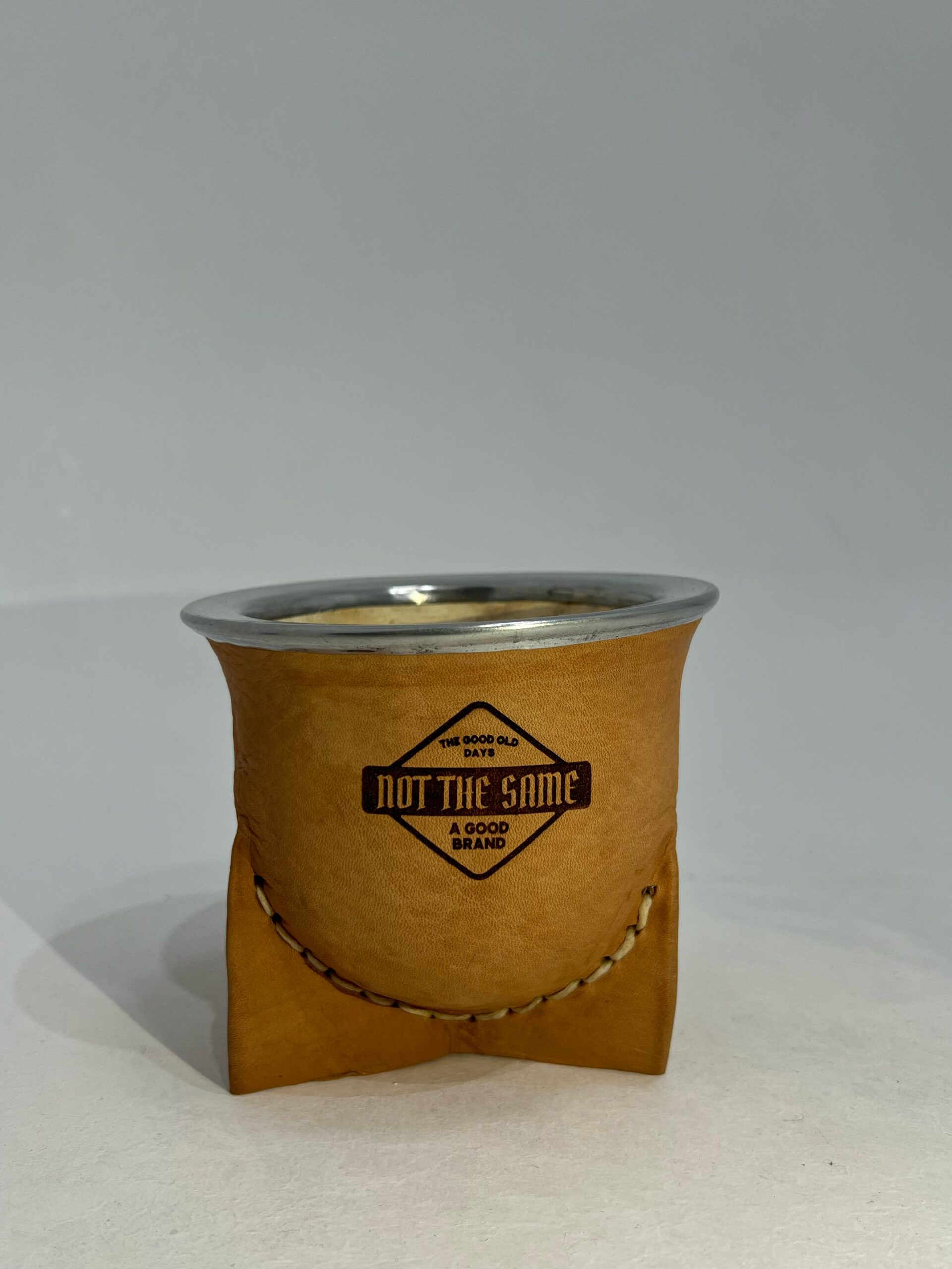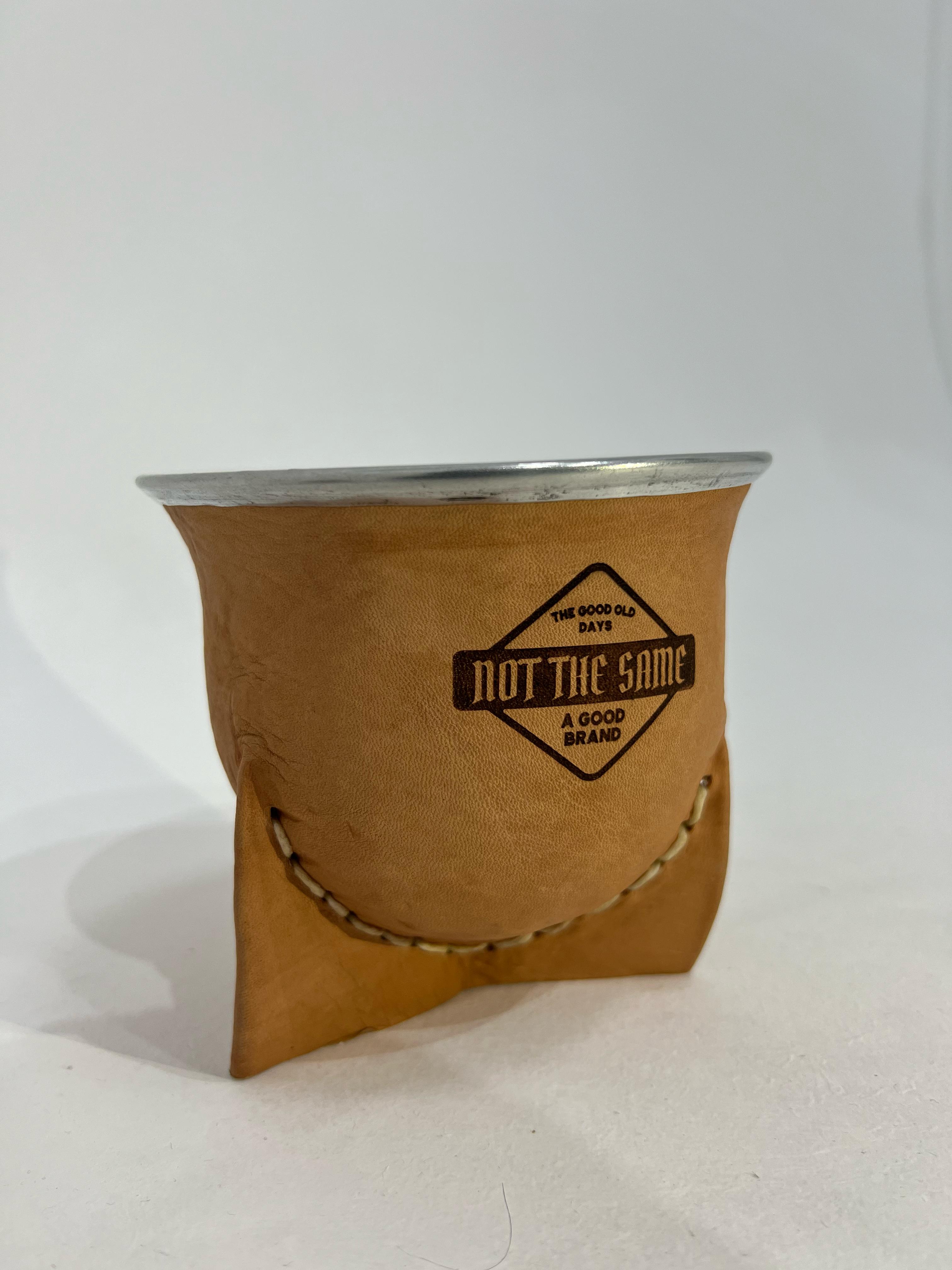MATE DE LA CALABAZA FORRADO EN VAQUETA, TIENE TRES PATAS Y BOCA ANCHA, EL MISMO POSEE UNA VIROLA DE ACERO EN SU PARTE SUPERIOR.